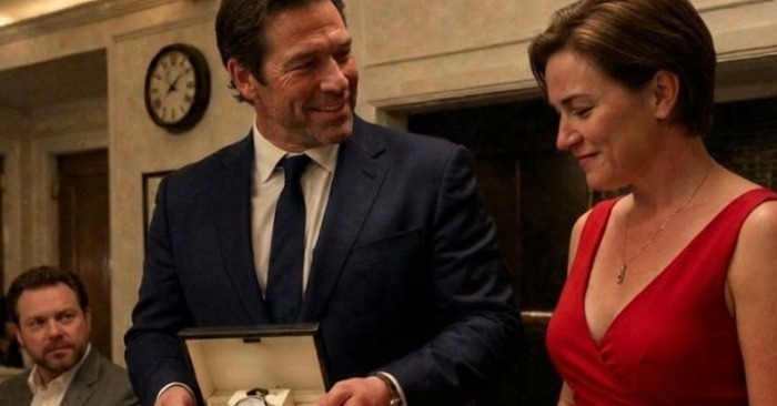 Colin vošiel tesne pred hosťami — oholený, v košeli, voňajúci kolínskou vodou. Rýchlo na seba strhol pozornosť spoločnosti. Vtipy, prípitky, príbehy o tom, ako „na všetko si zarobil sám“. Smiech bol hlasný a úprimný.