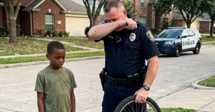 Policajt ťažko vzdychol, pozrel sa na zničený bicykel a potom na chlapca. A vtedy urobil niečo, čo všetkých prítomných úplne ohromilo.