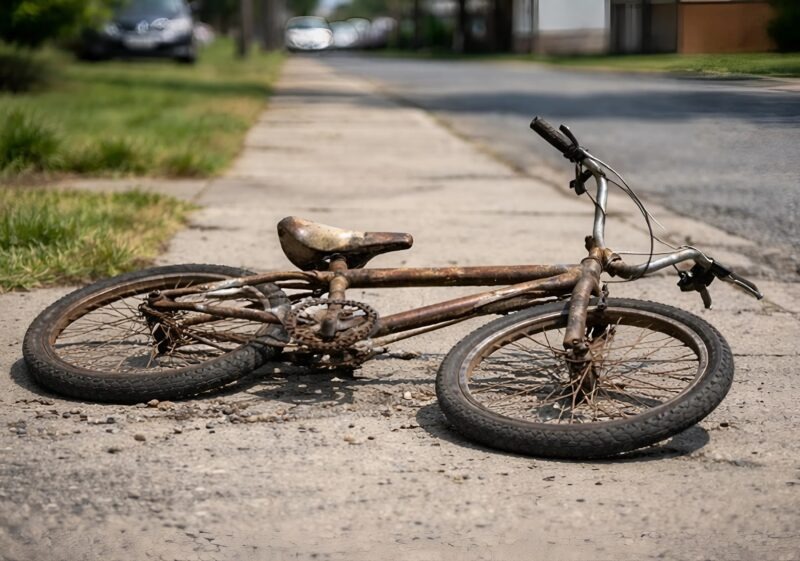 Policajt sa však nezastavil. Ešte niekoľkokrát udrel do rámu, až sa úplne zdeformoval. Starý bicykel ležal na asfalte ako zlomená hračka.