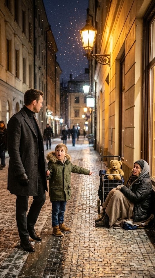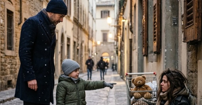 Zámožný muž prechádzal okolo ženy žobrajúcej na chodníku — až jeho syn sa náhle zastavil, otočil sa a povedal: „Oci… to je mama.“