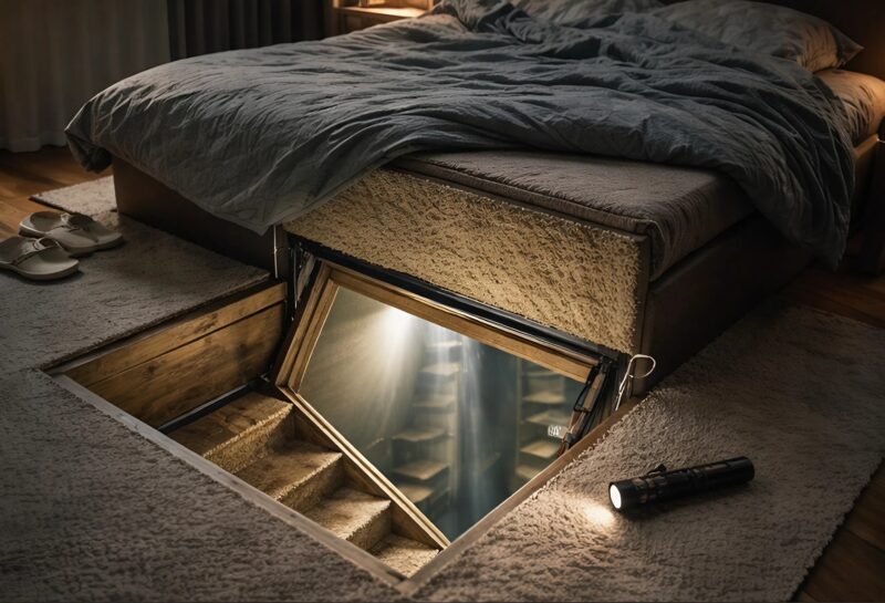 Môj manžel odsunul posteľ. Pod kobercom bola poklopová doska. Otvoril ju a obaja zišli dole.