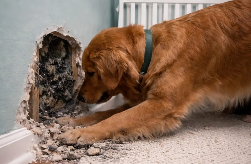 Včera večer som stratila trpezlivosť. Vošla som do izby a uvidela som, že Daisy urobila v stene obrovskú dieru. Sadrokartón bol rozbitý, kúsky omietky ležali na koberci a ona stále škriabala okraje otvoru, akoby sa ho snažila ešte zväčšiť.