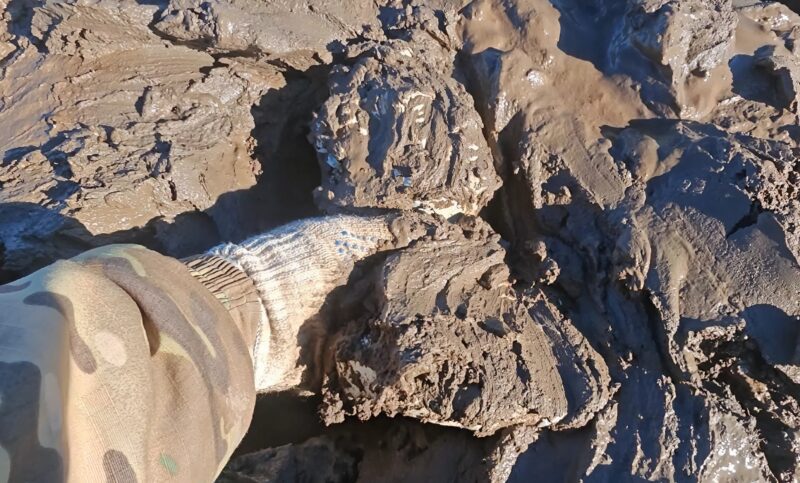 Muž urobil posledné, silné trhnutie a nález konečne vyskočil na povrch. Ledva ho stihol zachytiť, aby nespadol späť do kaše.