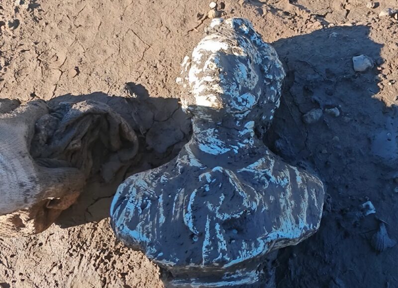 Náhle sa vyrovnal a uprene sa zahľadel na nález. Bola to hlava sochy Alexandra Puškina.