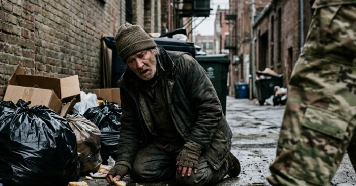 Bezdomovec sklonil hlavu. V tej chvíli už necítil ani hlad, len horkosť. Mal pocit, že svet sa definitívne stal chladným a krutým.