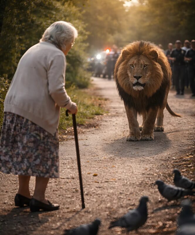 Po niekoľkých uliciach zabočil do malého parku. Tam, na lavičke, sedela staršia žena a pokojne kŕmila holuby omrvinkami chleba. Obrovský lev začal pomaly pristupovať k nej zozadu. Chcel som zakričať, aby som ju varoval, ale vedel som, že ju môžem len vystrašiť a vyprovokovať dravca.