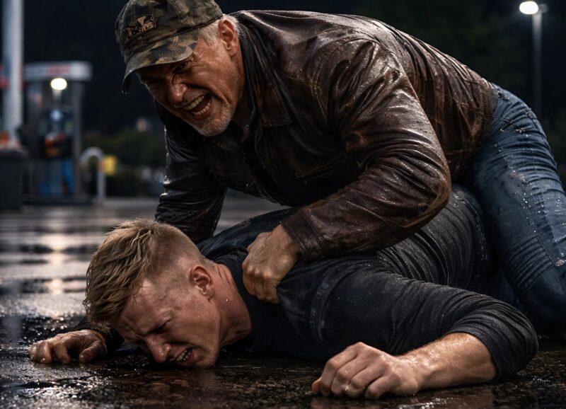 Chuligan sa trhal, snažiac sa oslobodiť, ale starý muž ho ešte pevnejšie pritlačil k mokrému betónu.