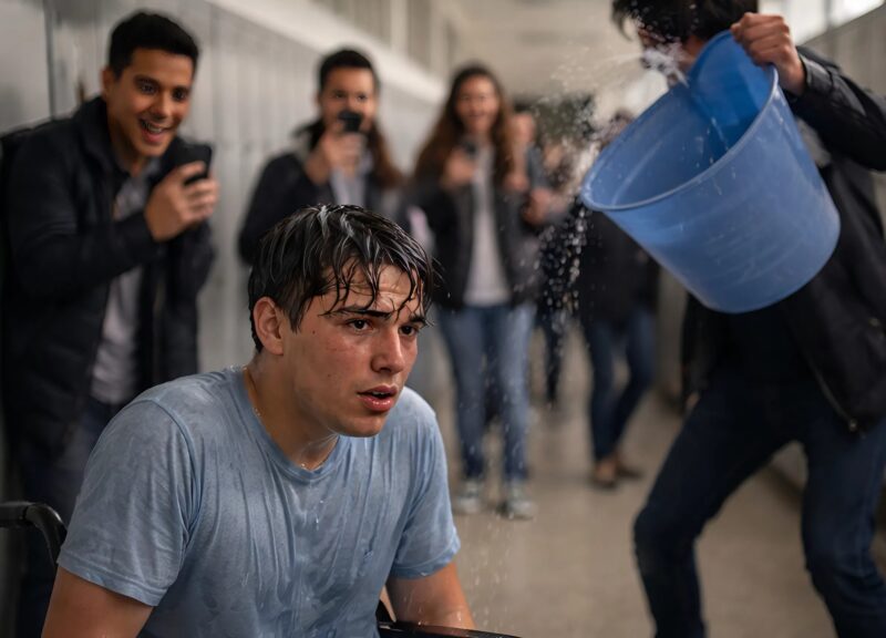 Na chodbe zavládla tichosť. Alex stále sedel na svojom vozíku, premočený a trasúci sa, ale po prvýkrát po veľmi dlhej dobe okolo neho nebolo smiechu.
