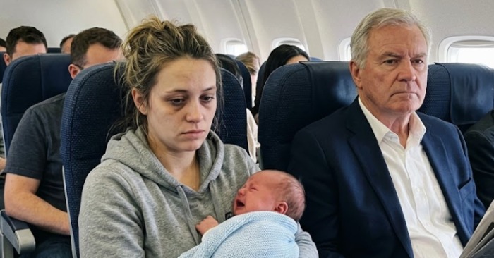 Zaspala. Muž vedľa nej sa zamračil a podráždene sa pozrel na vyčerpanú matku. Potom však urobil niečo, čo uviedlo celé lietadlo do nemého úžasu 😱😲