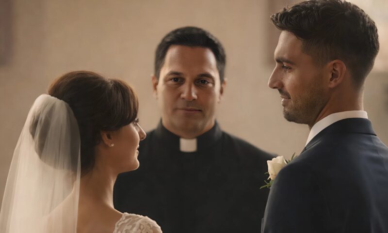 Keď som došla k Michaelovi a chytila jeho ruku, všetko okolo akoby zmizlo. Zostali sme len my dvaja. Kňaz začal hovoriť, obrad pokračoval a ja som takmer prestala myslieť na hostí… keď zrazu ticho prerušil zvuk odsúvaného stoličky.