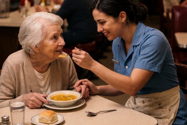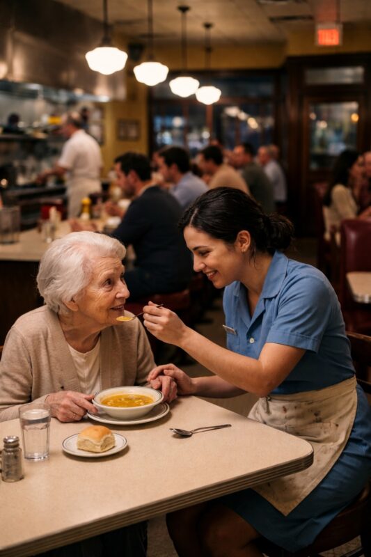 Miliardár sedel v tichu v preplnenom bare a sledoval, ako mladá čašníčka pomáha jeho trasúcej sa matke zjesť jedlo – a práve v tom nenápadnom momente sa stalo niečo, čo si nemohol kúpiť za žiadne peniaze.