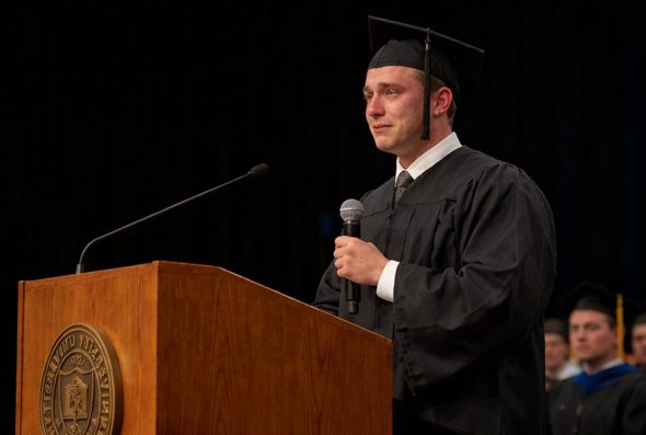 Ale v deň ukončenia štúdia jedna veta spôsobila, že celá sála stíchla a potom prepukla do plaču.